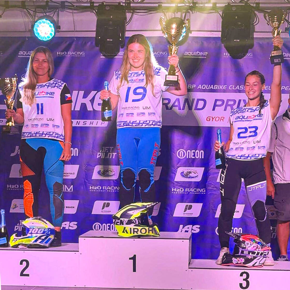 Mit zwei zweiten Plätzen und einem Sieg erreichte Michelle Dimov die höchste Gesamtpunktzahl in ihrer Klasse und gewann damit den Grand Prix von Ungarn – ein bedeutender Triumph im Rahmen der UIM Aquabike Europameisterschaft.