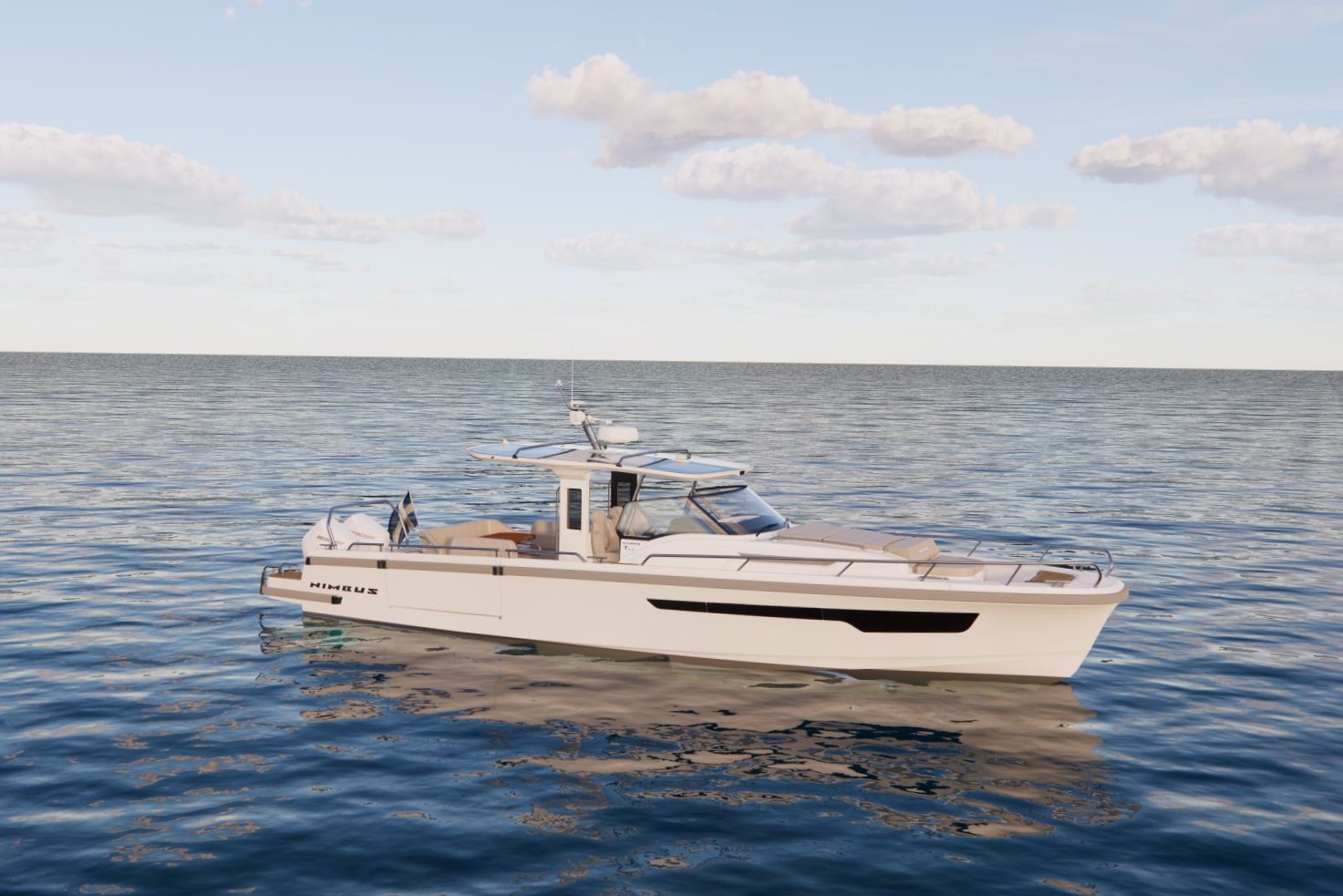 Neue 40-mm-Edelstahlrelingen, ein modifiziertes Rumpfdekor mit poliertem Nimbus-Logo und optimierte Linienführung verleihen den Booten eine modernere und hochwertigere Präsenz auf dem Wasser.