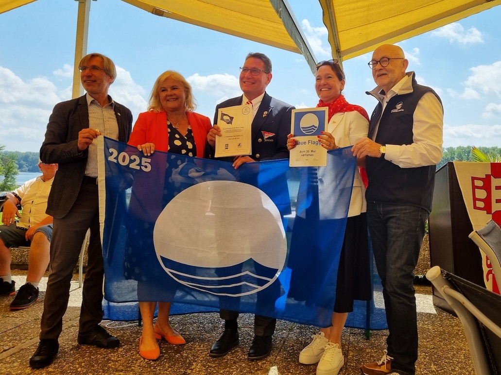 Die Umweltauszeichnung Blaue Flagge wird seit 1987 an Badestellen und Sportboothäfen verliehen. Hierzu muss ein umfangreicher Kriterienkatalog in den Bereichen Umweltkommunikation, Umweltmanagement, Sicherheit und Wasserqualität erfüllt werden. Umweltschutz, so Alexander Knittel, sollte nicht nur in der Satzung, sondern muss auch im Verein bei den Mitgliedern verankert sein. Die Blaue Flagge ist mehr als ein Stück Stoff. Sie ist ein Symbol der Anerkennung und steht für die Motivation der Vereine, den Anforderungen des Umwelt- und Naturschutzes kontinuierlich gerecht zu werden. Dies haben die Mitglieder des 1. MBC Speyer bewiesen. Die Blaue Flagge weht zum 30. Mal in Folge über dem Hafen.